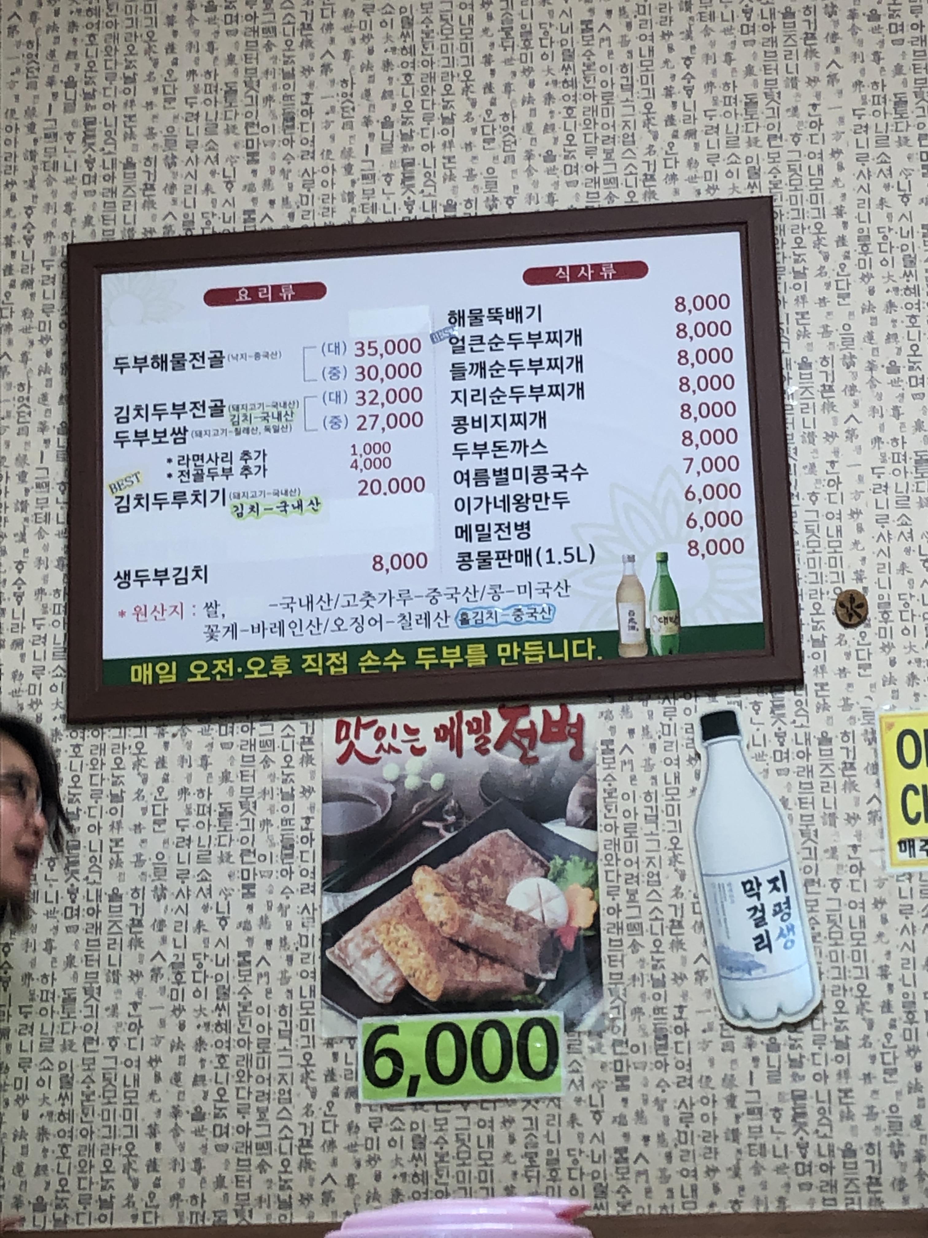 벽에 걸린 메뉴판을 보니 전병 그림이 크게 걸려 있네요. 먹고 싶었지만 혼자 와서 주문은 패스합니다.
