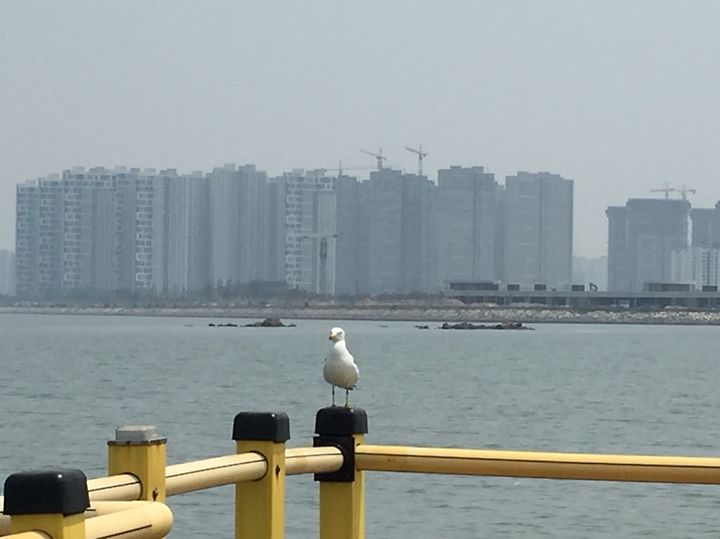 빗방울이 그친 후 오이도에 설치된 구조물을 거닐었습니다. 갈매기가 잠깐 휴식을 취하고 있는 모습을 찍어보았습니다. 살며시 가까이 가다가 찍었는데 달아나지 않더군요. 먹이를 달라고 하는 느낌이 들었습니다.